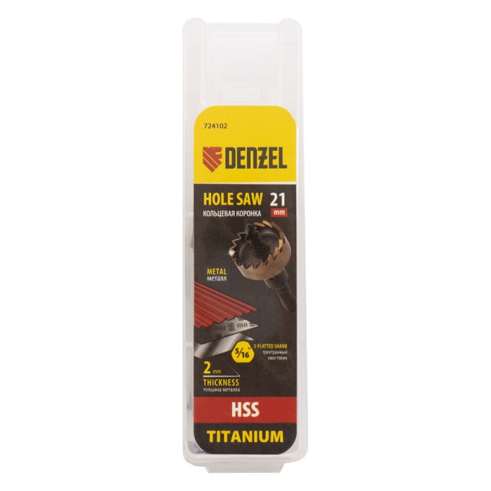 Коронка по металлу HSS, 21 мм, нитридтитановое покрытие Denzel (724102)