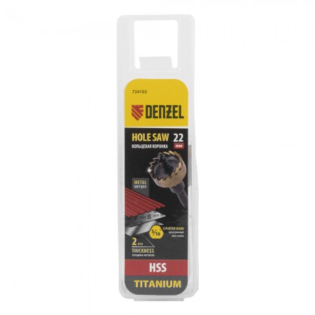 Коронка по металлу HSS, 22 мм, нитридтитановое покрытие Denzel (724103)