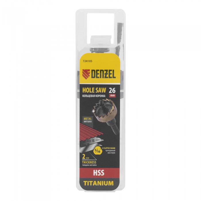 Коронка по металлу HSS, 26 мм, нитридтитановое покрытие Denzel (724105)