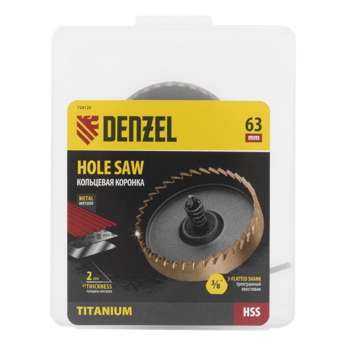Коронка по металлу HSS, 63 мм, нитридтитановое покрытие Denzel (724120)
