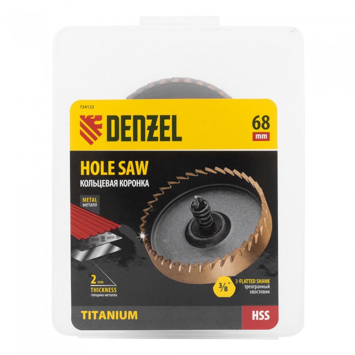 Коронка по металлу HSS, 68 мм, нитридтитановое покрытие Denzel (724122)