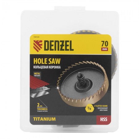 Коронка по металлу HSS, 70 мм, нитридтитановое покрытие Denzel (724123)