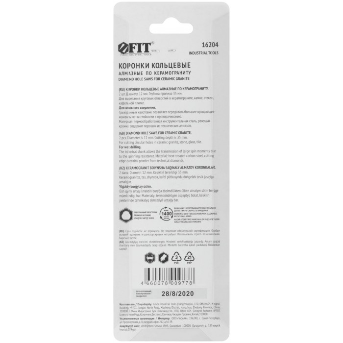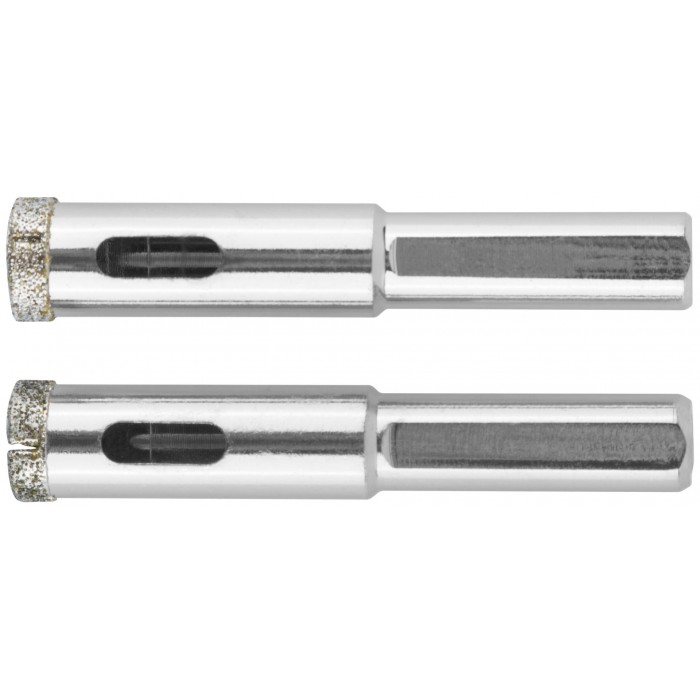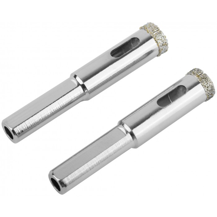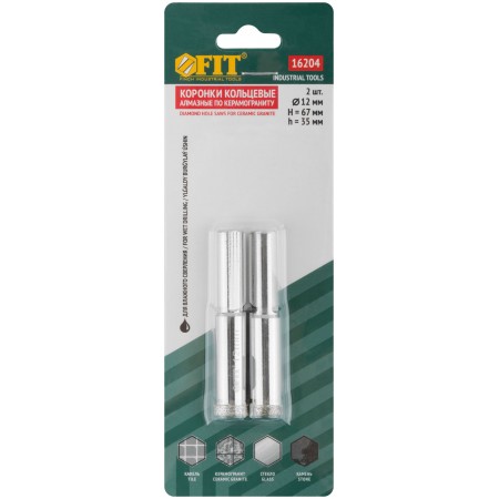 Коронки кольцевые по керамограниту, камню и кафелю алмазные, набор 2 шт., 12х65 мм (16204)