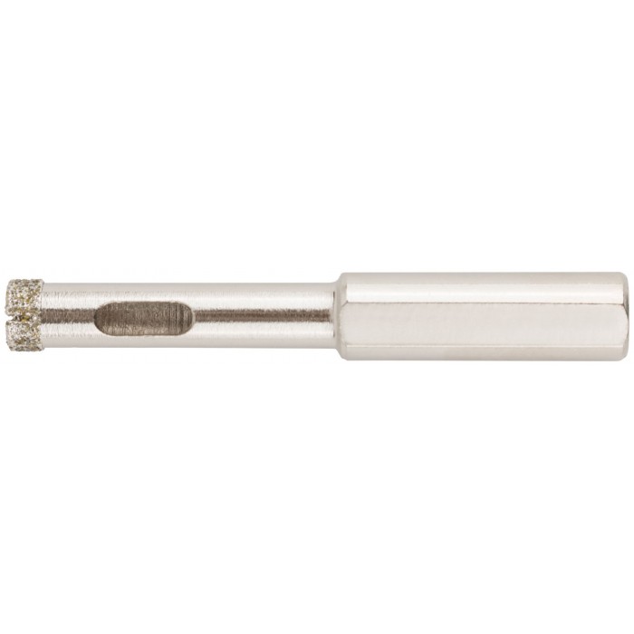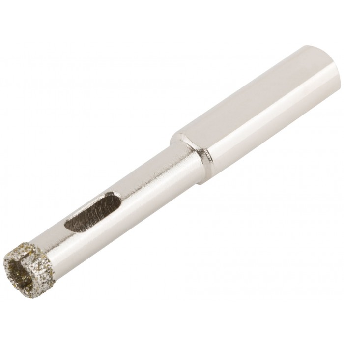 Трехгранный хвостик. Для вырезания круговых отверстий в керамограните, камне, стекле, кафельной плитке. Влажное сверление. Материал: инструментальная сталь, режущая кромка содержит порошок из технических алмазов.