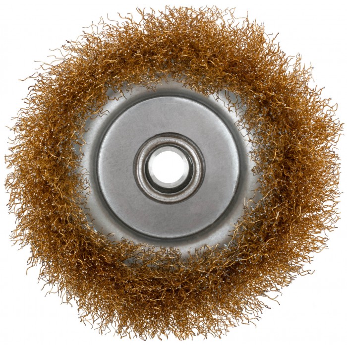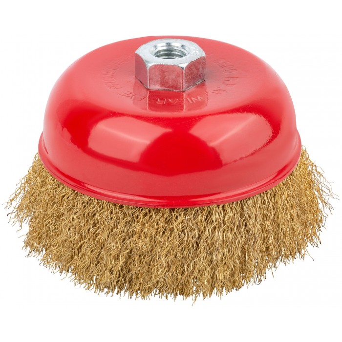 Тип «чаша». Для УШМ. С гайкой М14. Материал: стальная латунированная проволока. Упаковка: картонная коробка.