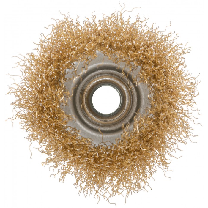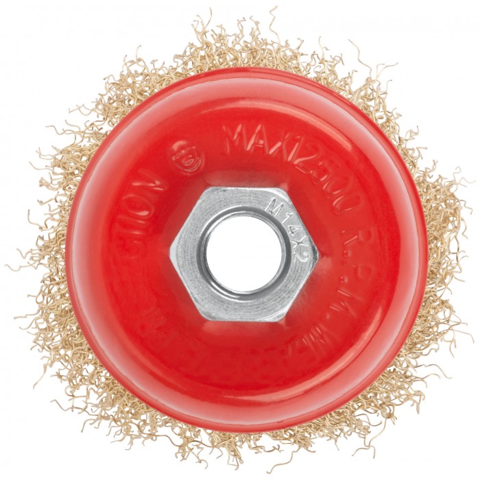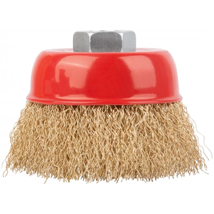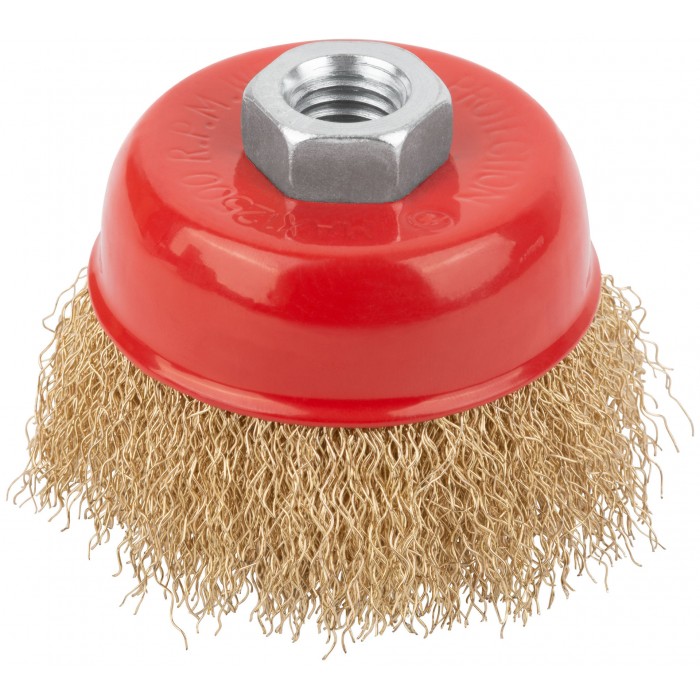 Корщетка чашечная, гайка М14, стальная латунированная волнистая проволока 75 мм (39037)