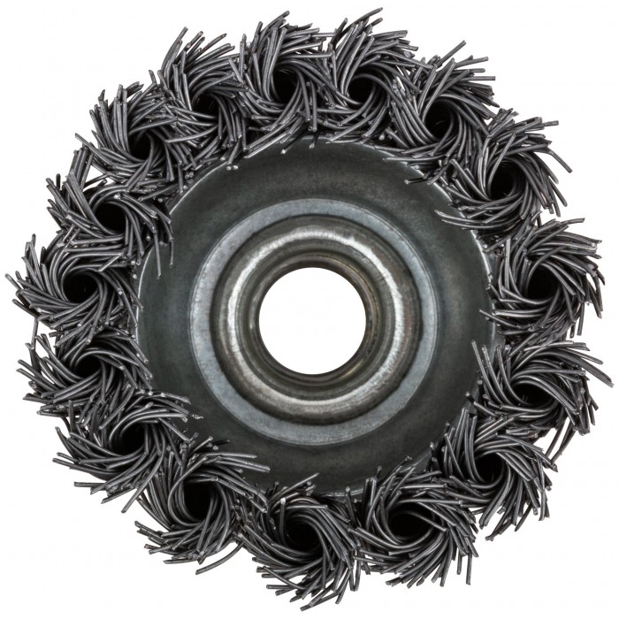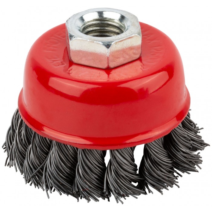 Тип «чаша». Для УШМ. С гайкой М14. Материал: стальная проволока. Упаковка: картонная коробка.