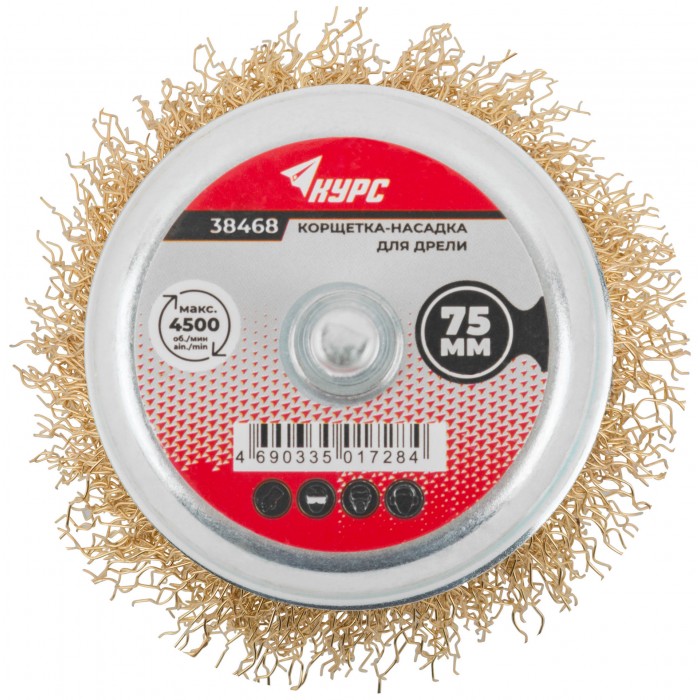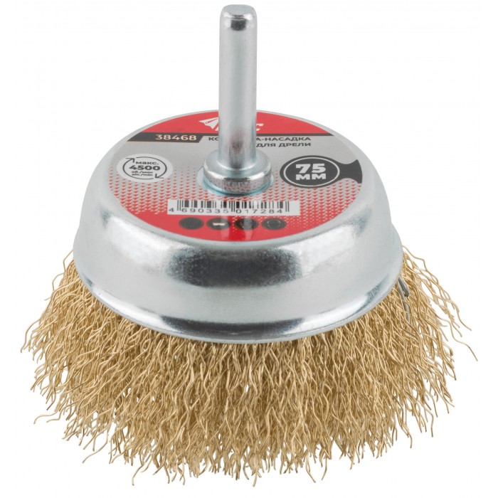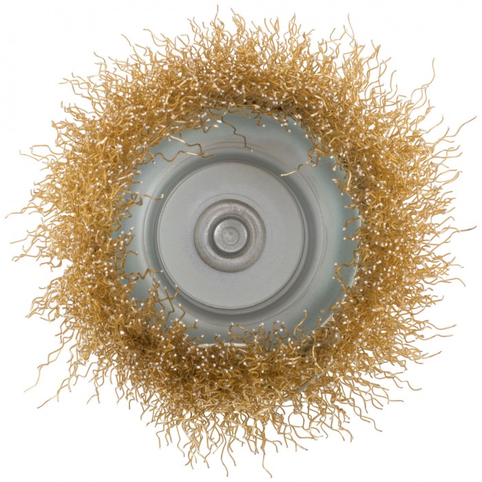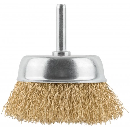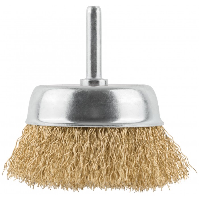 Корщетка чашечная, со шпилькой, стальная латунированная волнистая проволока 75 мм (38468)