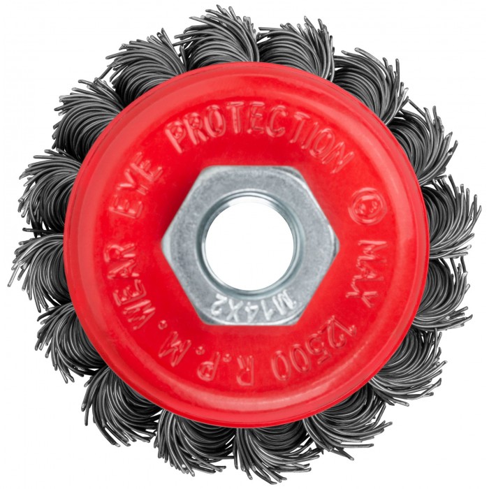 Тип «чашка», гайка М14. Для УШМ. Витая стальная проволока. Упаковка: картонная коробка.