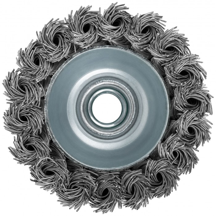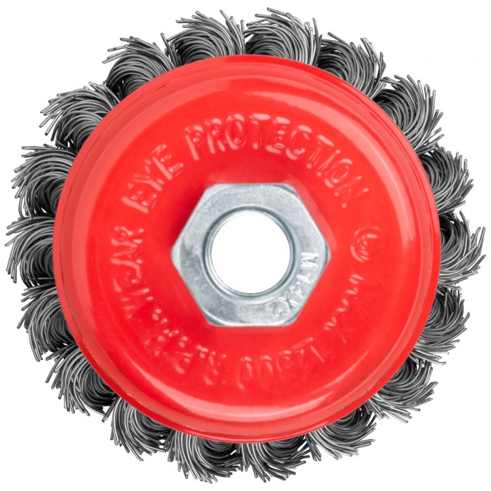 Тип «чашка», гайка М14. Для УШМ. Витая стальная проволока. Упаковка: картонная коробка.