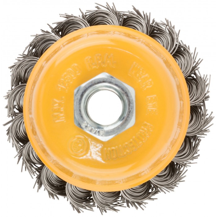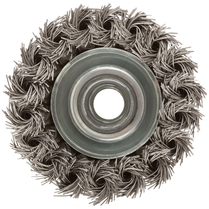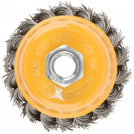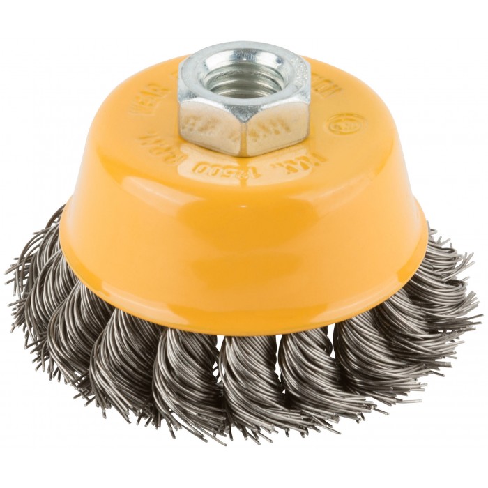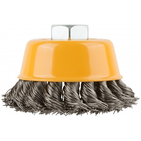 Корщетка-чашка, гайка М14, витая проволока, нержавеющая сталь 75 мм (38847)