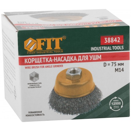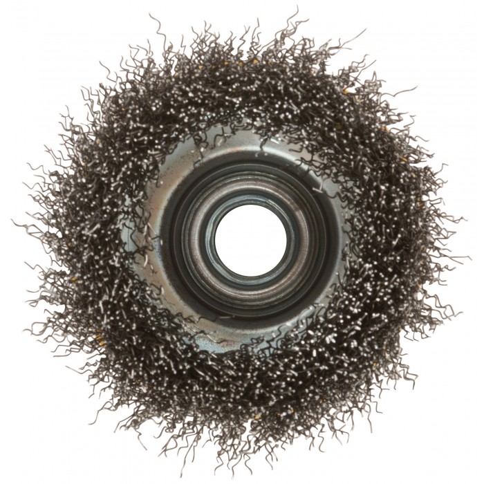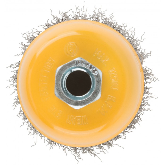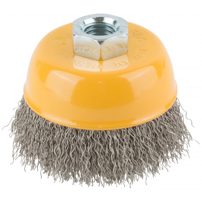 Корщетка-чашка, гайка М14, волнистая проволока, нержавеющая сталь 75 мм (38842)