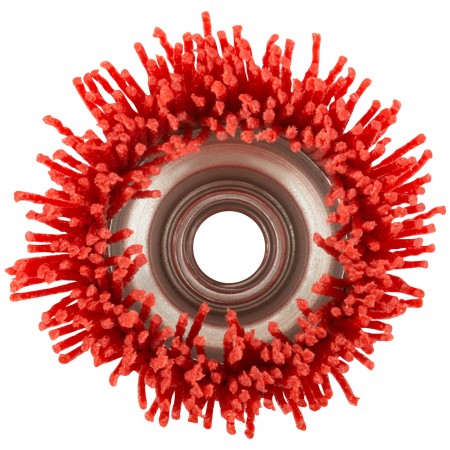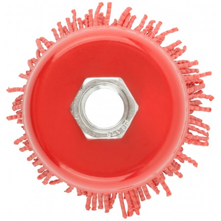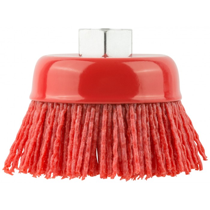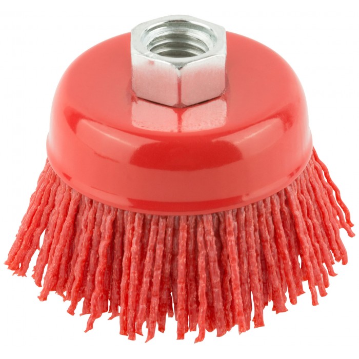 Тип «чашка». Нейлоновая. Для УШМ. Гайка М14. Для браширования древесины, удаления заусенцев, загрязнений и полировальных работ по дереву, пластику, стали и цветным металлам. Материал: нейлон, алюминий-оксидный абразив, основа из инструментальной стали. Упаковка: картонная коробка.