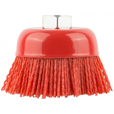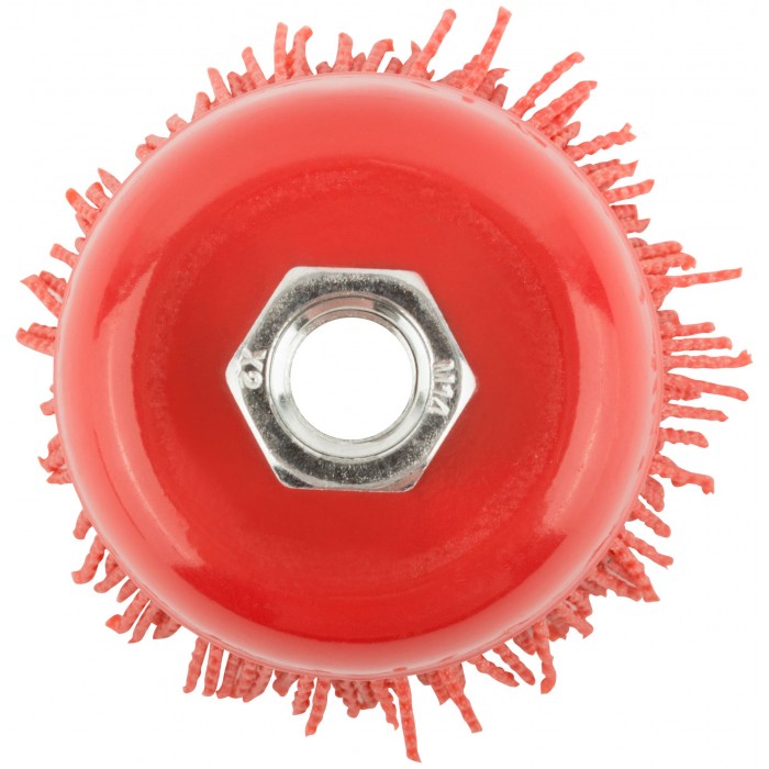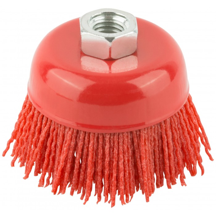 Тип «чашка». Нейлоновая. Для УШМ. Гайка М14. Для браширования древесины, удаления заусенцев, загрязнений и полировальных работ по дереву, пластику, стали и цветным металлам. Материал: нейлон, алюминий-оксидный абразив, основа из инструментальной стали. Упаковка: картонная коробка.