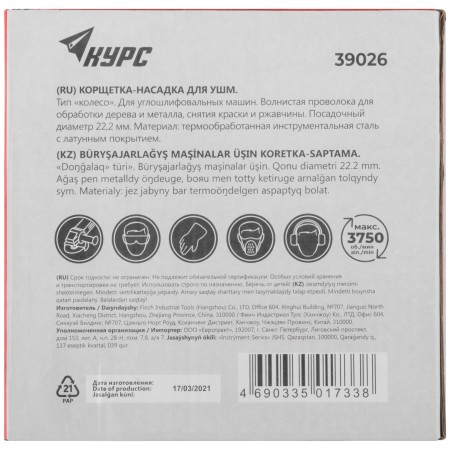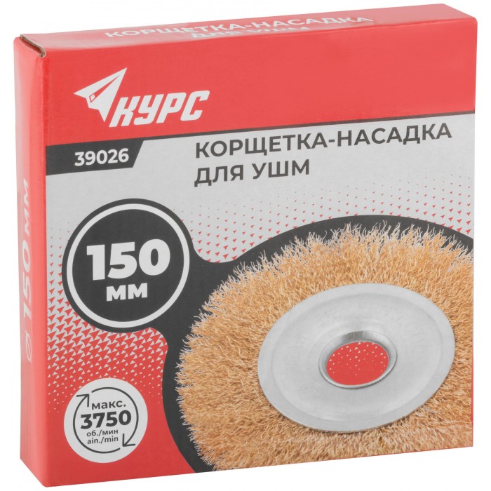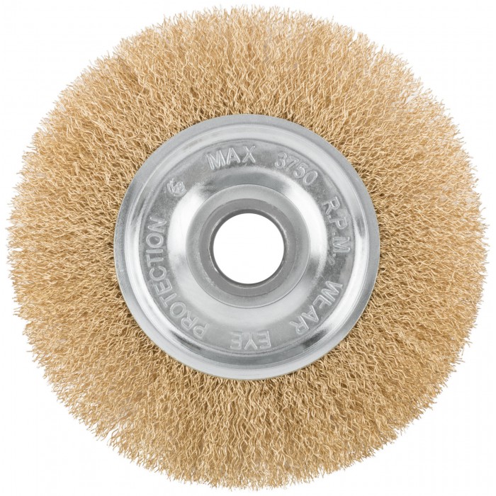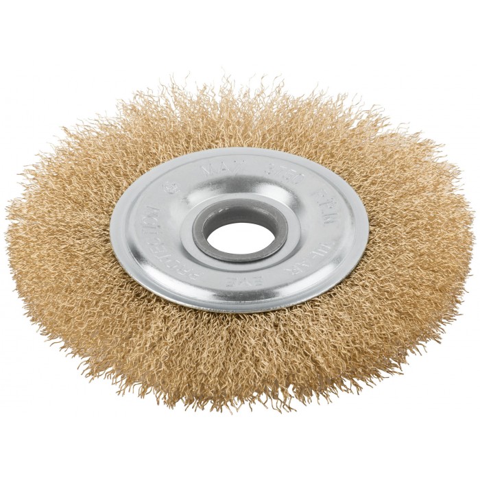 Корщетка дисковая прямая, посадочный диаметр 22,2 мм, стальная латунированная волнистая проволока 150 мм (39026)