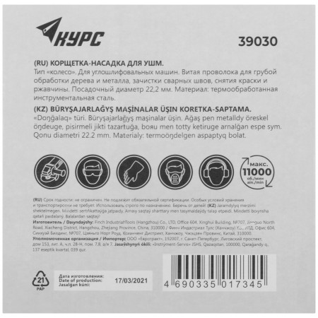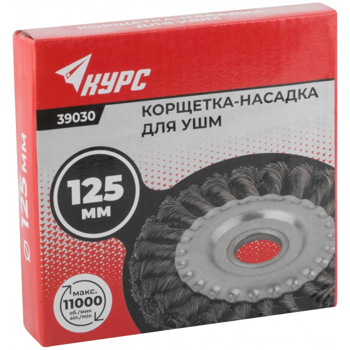 Корщетка дисковая прямая, посадочный диаметр 22,2 мм, стальная витая проволока 125 мм (39030)