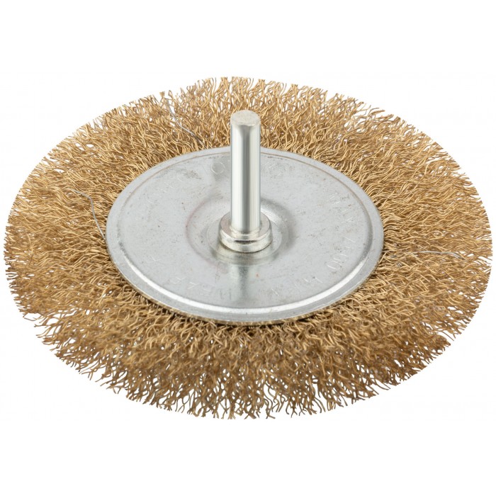 Корщетка дисковая прямая, со шпилькой, стальная латунированная волнистая проволока 100 мм (38465)