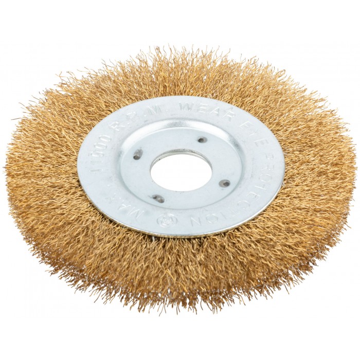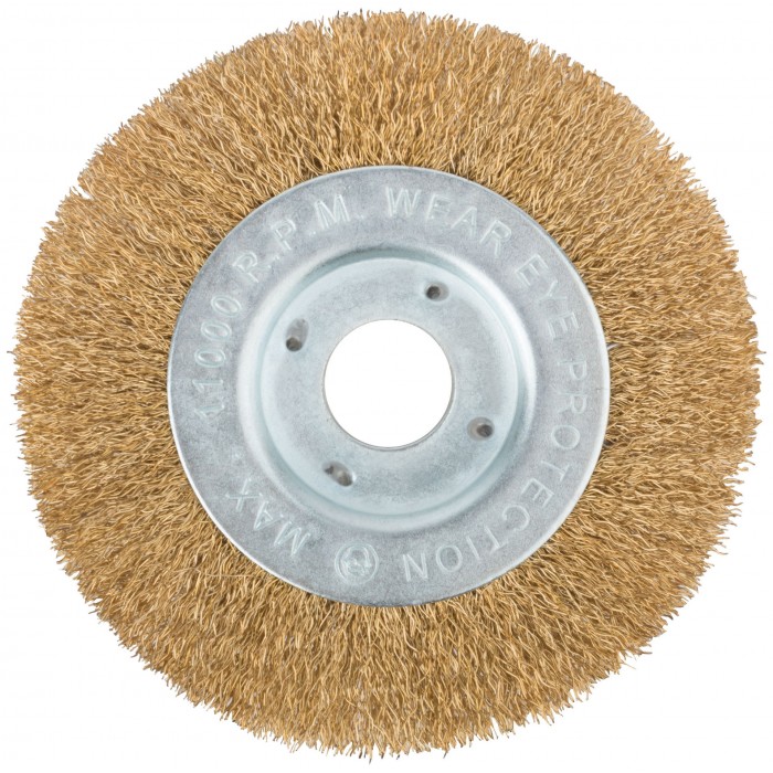 Корщетка-колесо, посадочный диаметр 22,2 мм, стальная латунированная волнистая проволока 125 мм (39065)