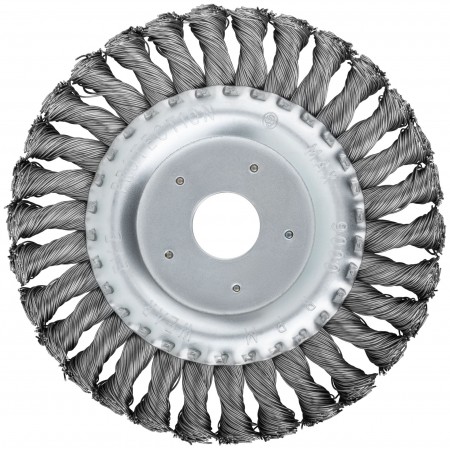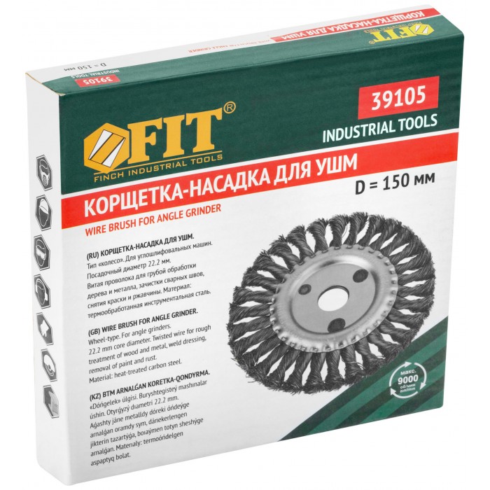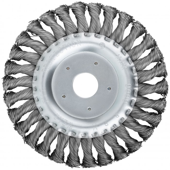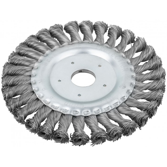 Тип «колесо». Для УШМ. Витая стальная проволока. Посадочный диаметр – 22,2 мм. Упаковка: картонная коробка.