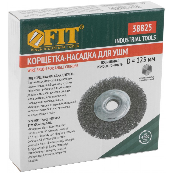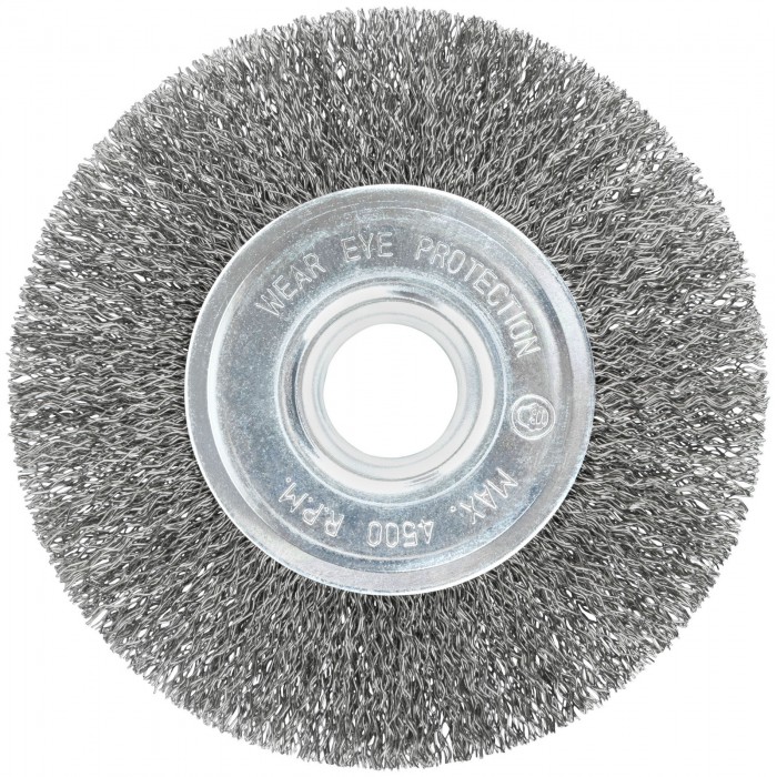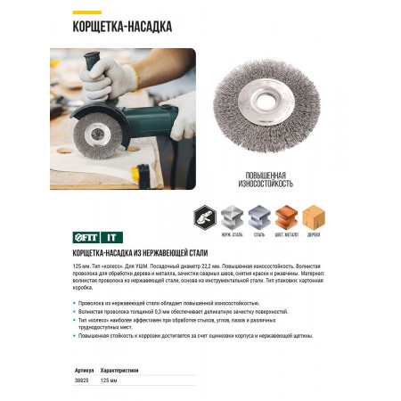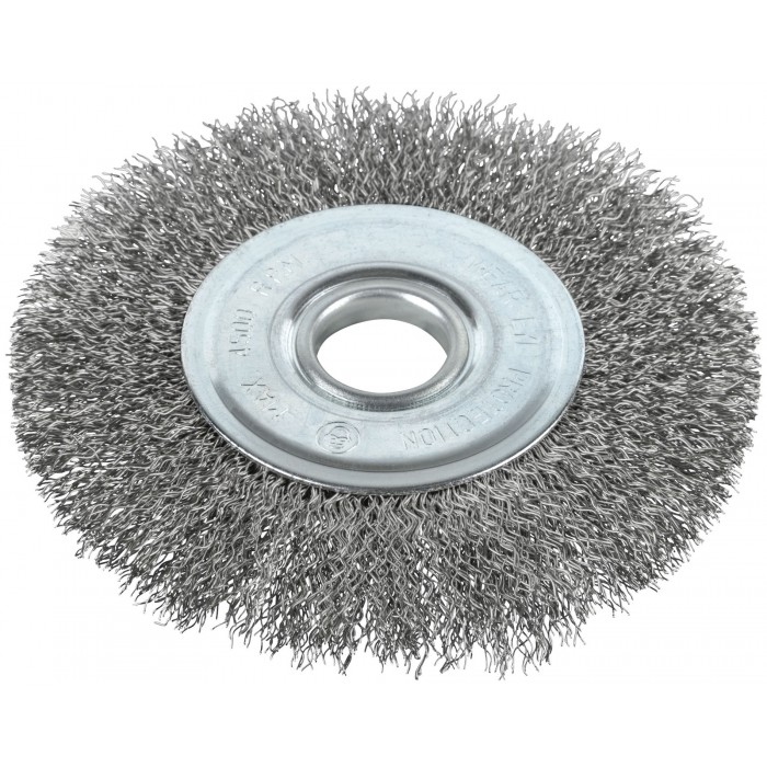Корщетка-колесо, посадочный диаметр 22,2 мм, волнистая проволока, нержавеющая сталь, Профи 125 мм (38825)