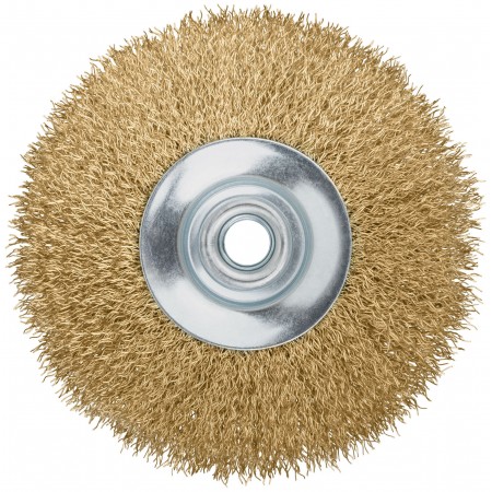Тип «колесо», с наклоном, гайка М14. Для УШМ. Материал: стальная, латунированная, волнистая проволока. Упаковка: картонная коробка.