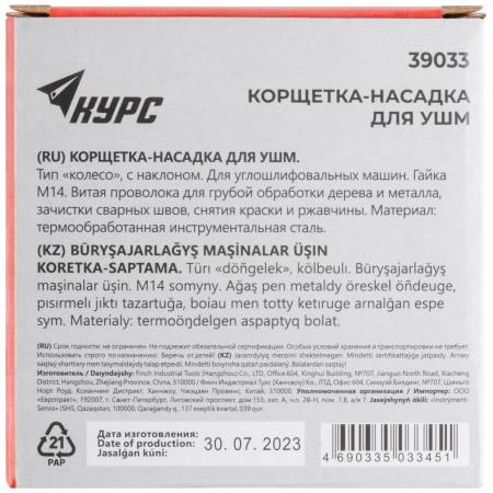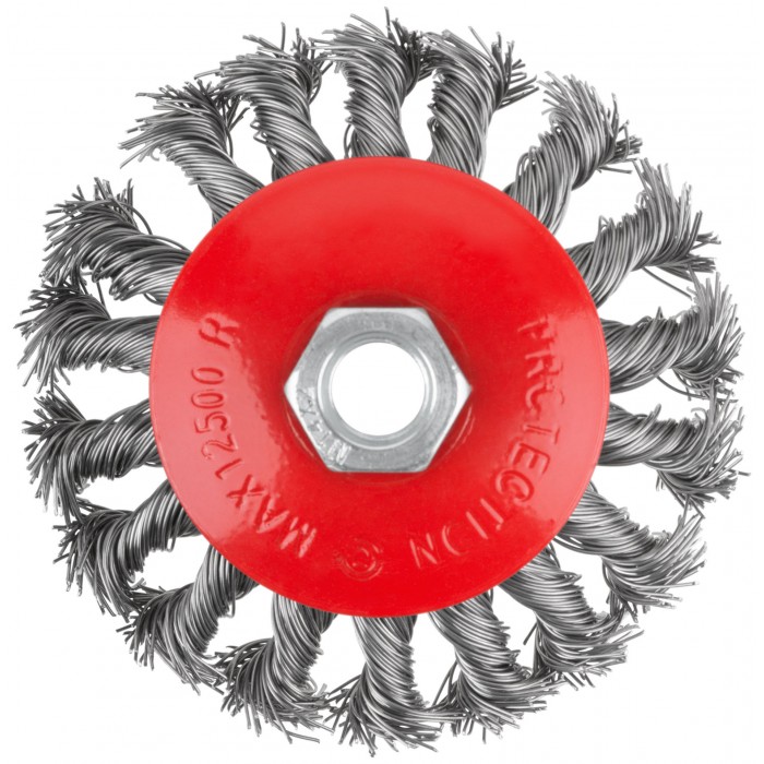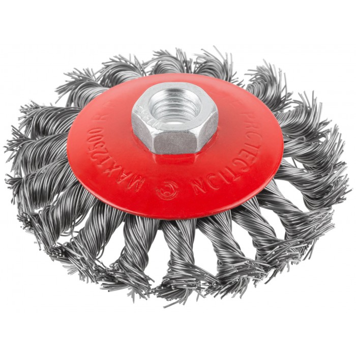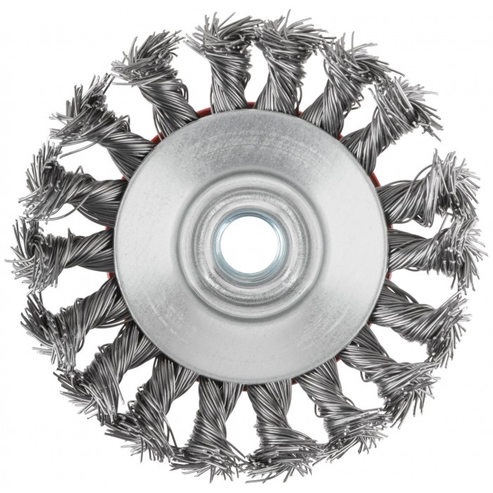 Тип ''колесо'', с наклоном. Для УШМ. Гайка М14. Материал: стальная витая проволока. Упаковка: картонная коробка.