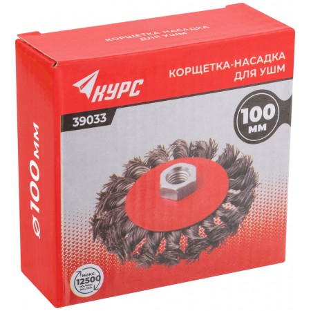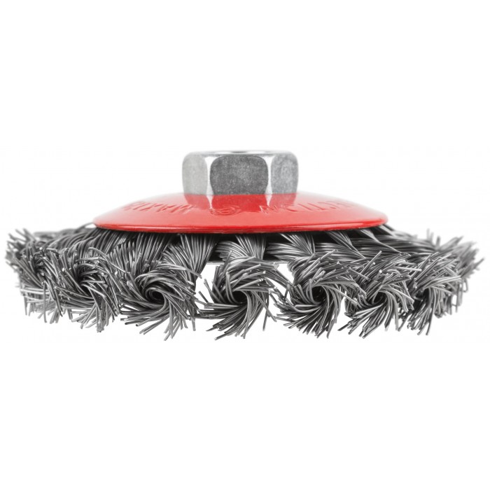 Корщетка-колесо с наклоном, гайка М14, стальная витая проволока 100 мм (39033)