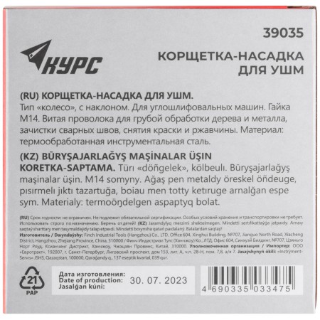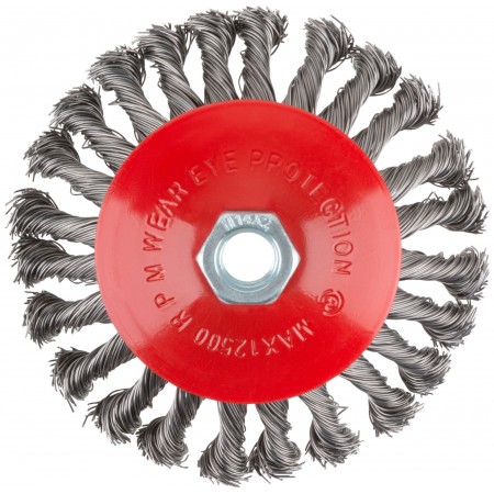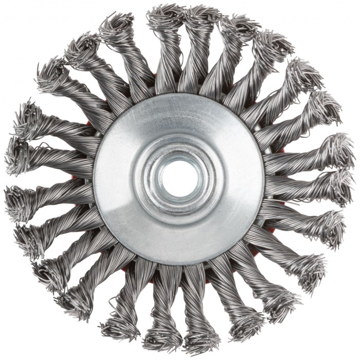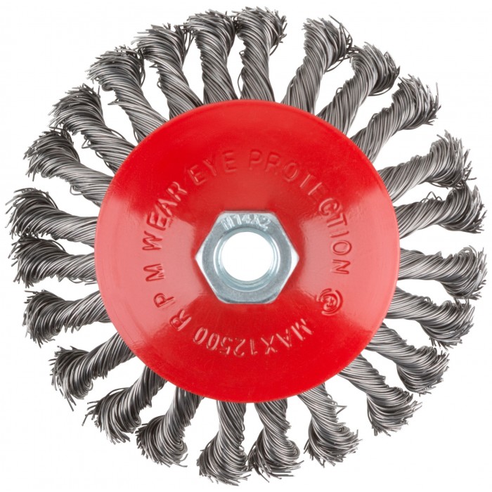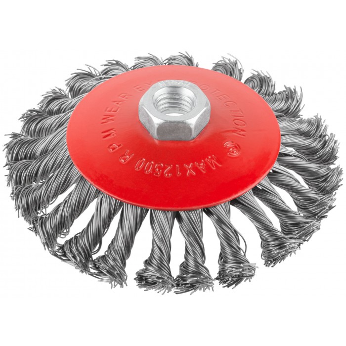 Тип ''колесо'', с наклоном. Для УШМ. Гайка М14. Материал: стальная витая проволока. Упаковка: картонная коробка.