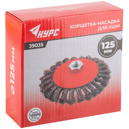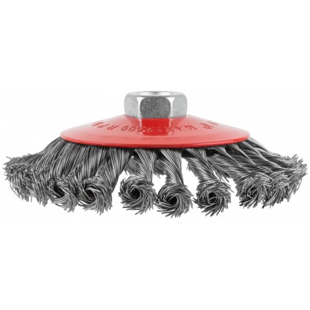Корщетка-колесо с наклоном, гайка М14, стальная витая проволока 125 мм (39035)
