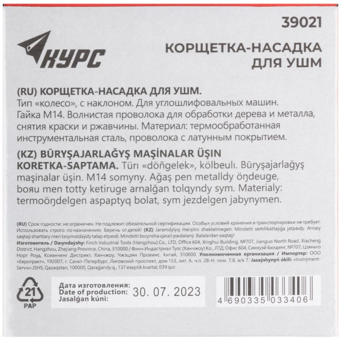 Тип ''колесо'', с наклоном. Для УШМ. Гайка М14. Материал: стальная латунированная волнистая проволока. Упаковка: картонная коробка.