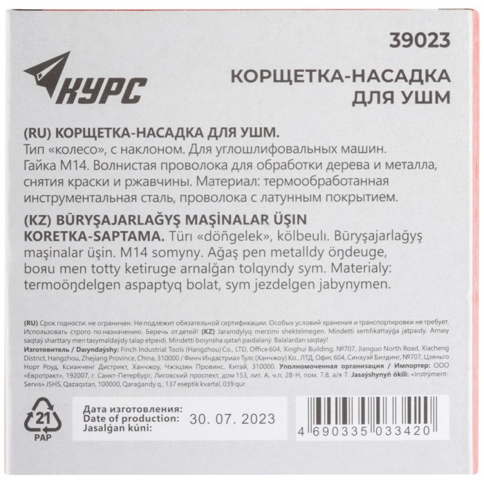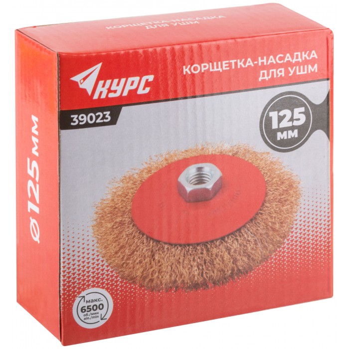 Тип ''колесо'', с наклоном. Для УШМ. Гайка М14. Материал: стальная латунированная волнистая проволока. Упаковка: картонная коробка.