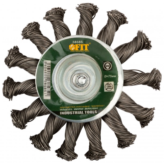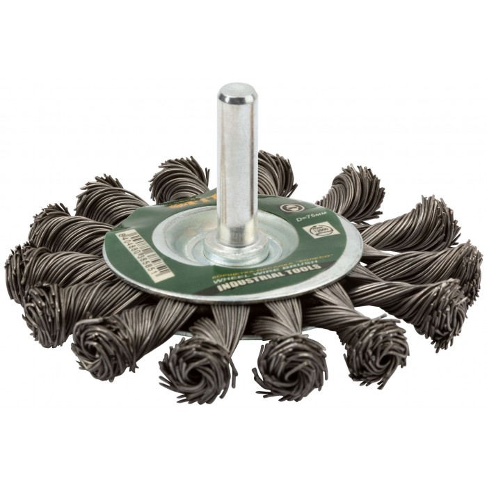 Корщетка-колесо, со штифтом, стальная витая проволока 75 мм (38585)