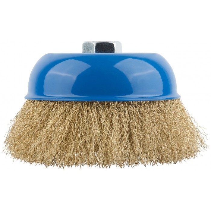 Корщетка, тип "чашка", гайка М14, стальная латунированная волнистая проволока 125 мм (38944М)