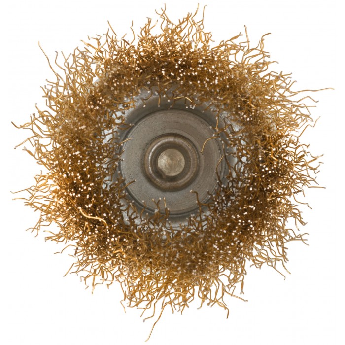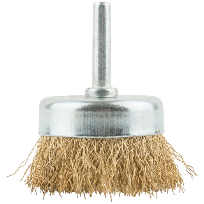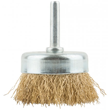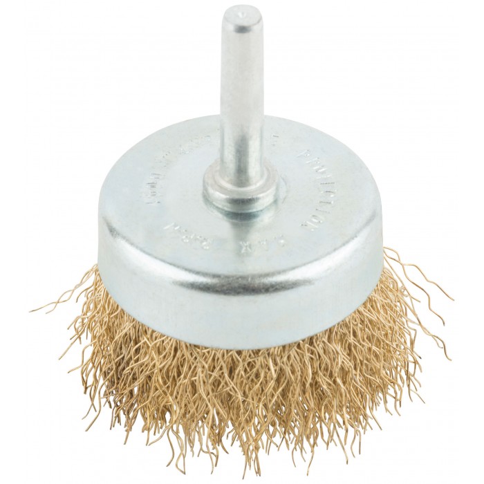 Корщетка, тип "чашка", со штифтом, стальная латунированная волнистая проволока 50 мм (38486М)