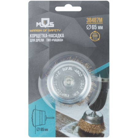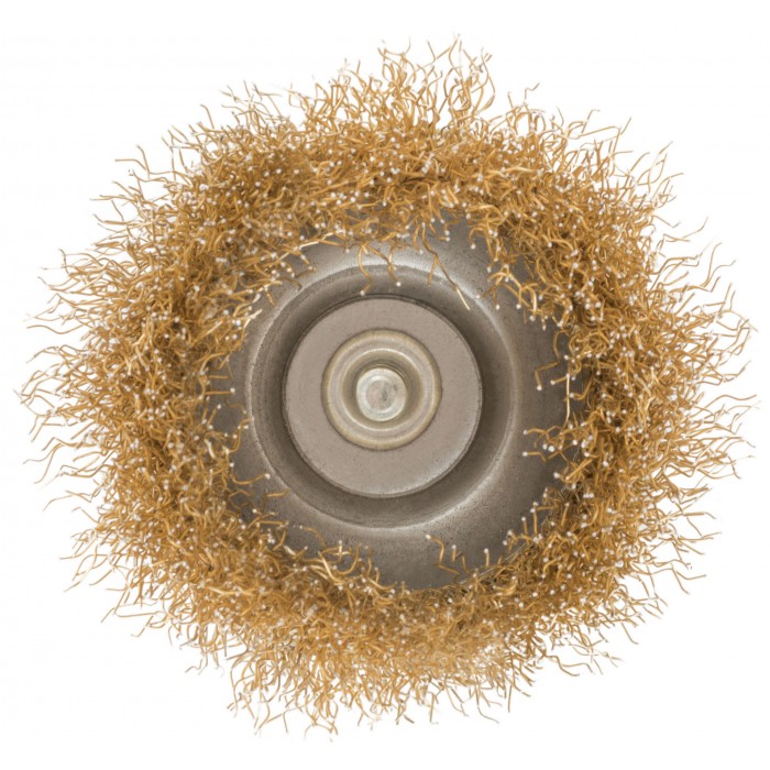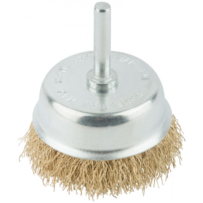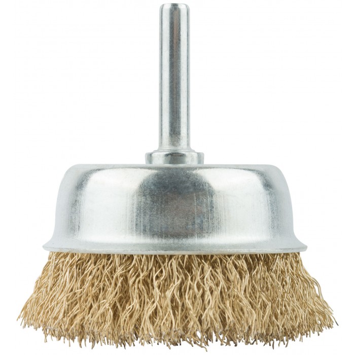 Корщетка, тип "чашка", со штифтом, стальная латунированная волнистая проволока 65 мм (38487М)