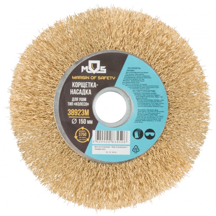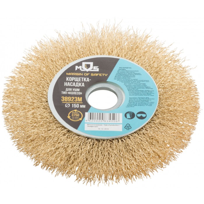 Корщетка, тип "колесо", посадочный диаметр 22,2 мм, стальная латунированная волнистая проволока 150 мм (38923М)
