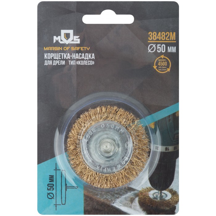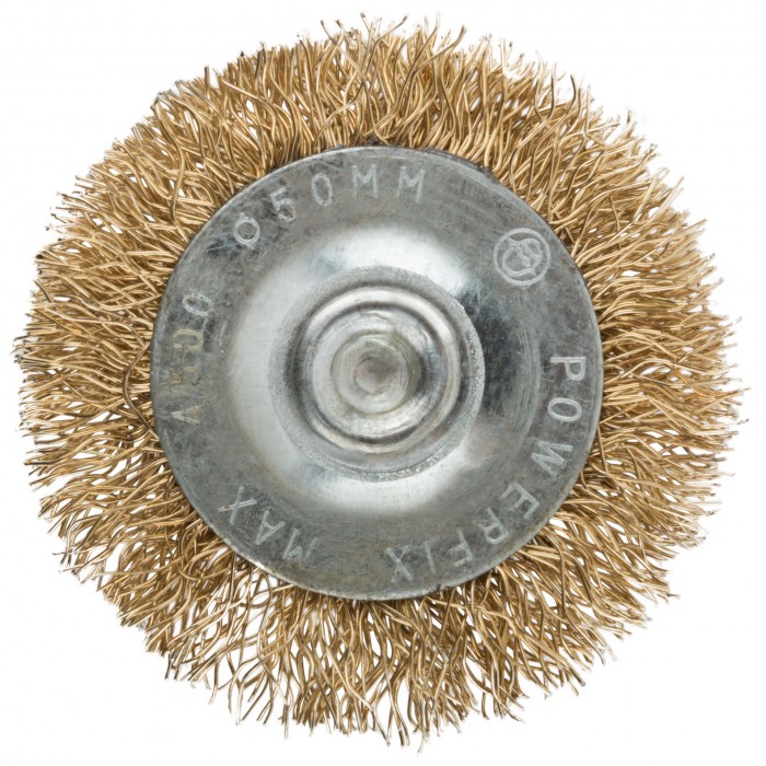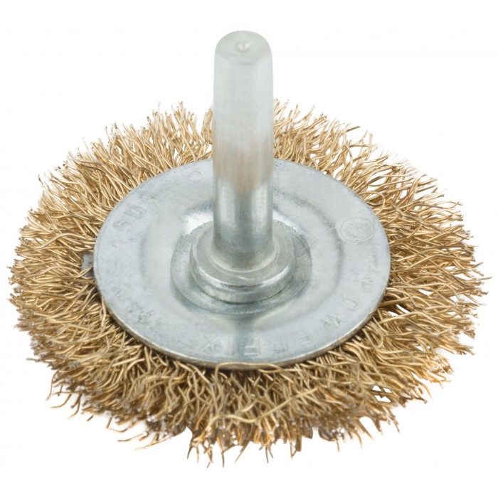 Корщетка, тип "колесо", со штифтом, стальная латунированная волнистая проволока 50 мм (38482М)