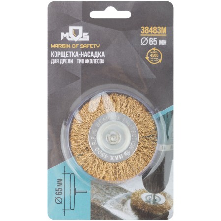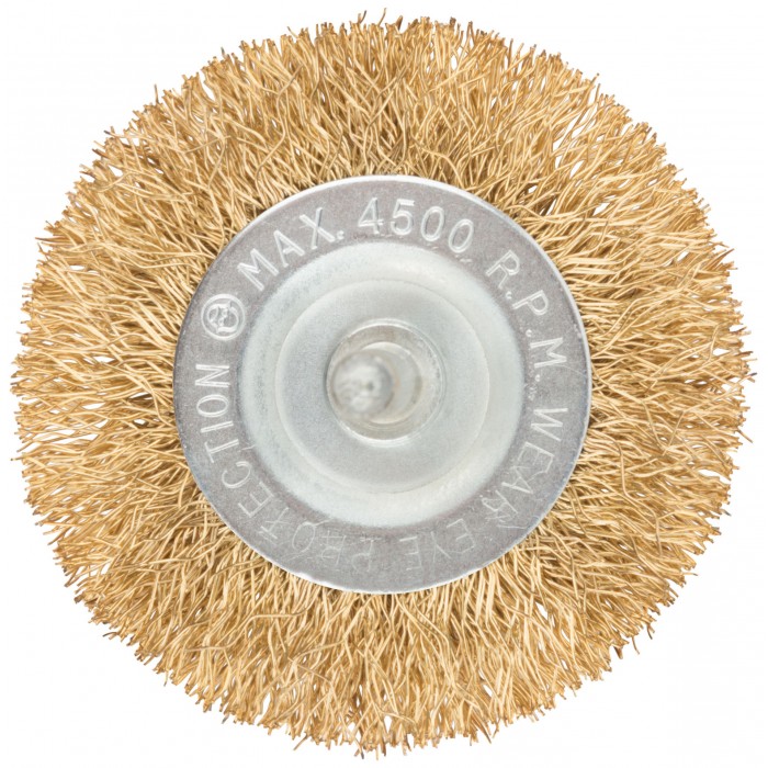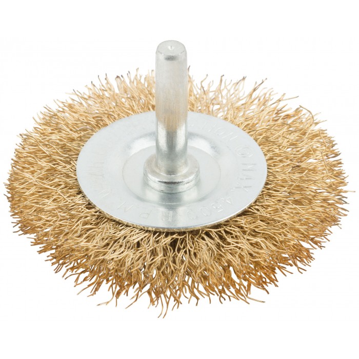 Корщетка, тип "колесо", со штифтом, стальная латунированная волнистая проволока 63 мм (38483М)