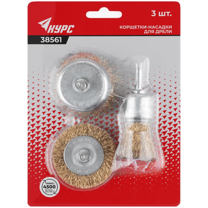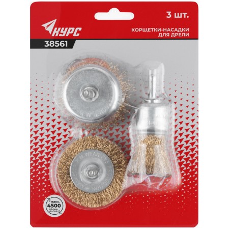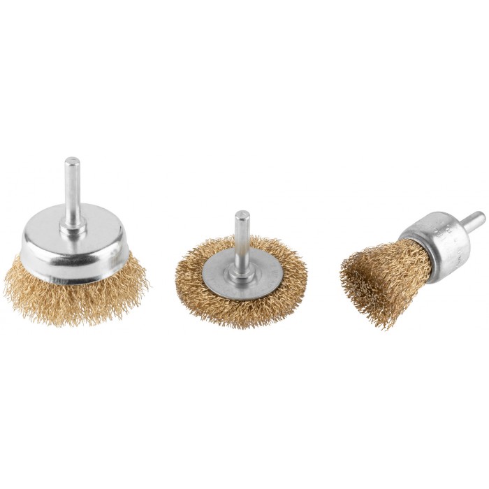 Корщетки со штифтом, набор 3 шт. ( колесо 50 мм / чашка 50 мм / венчик 25 мм ) (38561)
