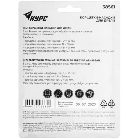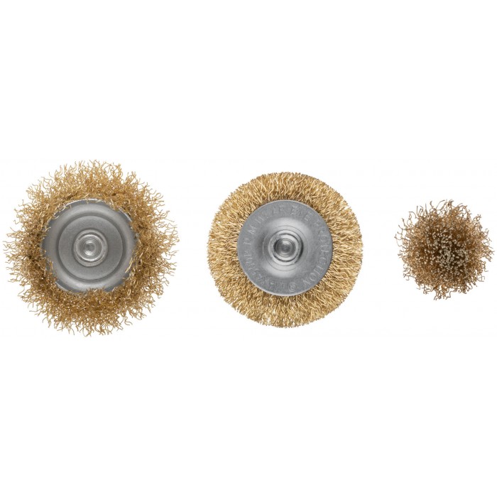 Набор 3 шт. Для дрели. Со шпилькой. Материал: стальная латунированная волнистая проволока. Упаковка: блистер.