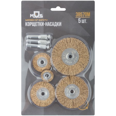 Корщетки со штифтом, набор 5 шт. (колеса 25 / 38 / 50 / 63 / 75 мм) (38570М)