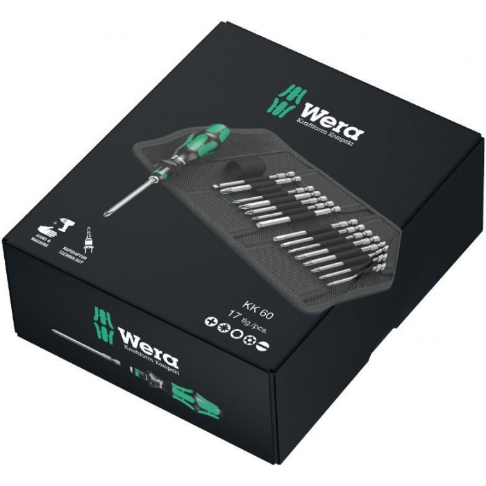 Kraftform Kompakt 60 набор бит с отвёрткой-битодержателем с патроном Rapidaptor, 17 пр. (WE-059295)