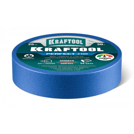 Малярная лента #100 Perfect, 25 мм х 30 м, для гладких и шероховатых поверхностей KRAFTOOL 12101-25