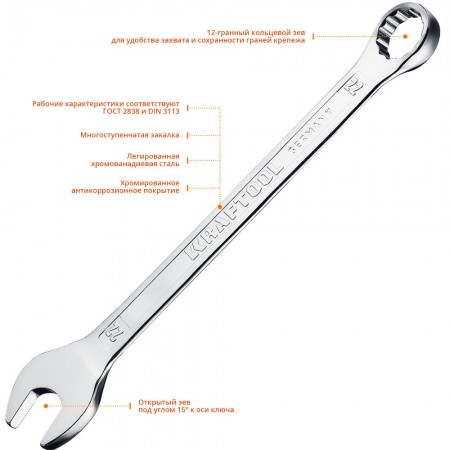 Набор ключей гаечных комбинированных 6 - 22 мм, 12 шт KRAFTOOL 27079-H12