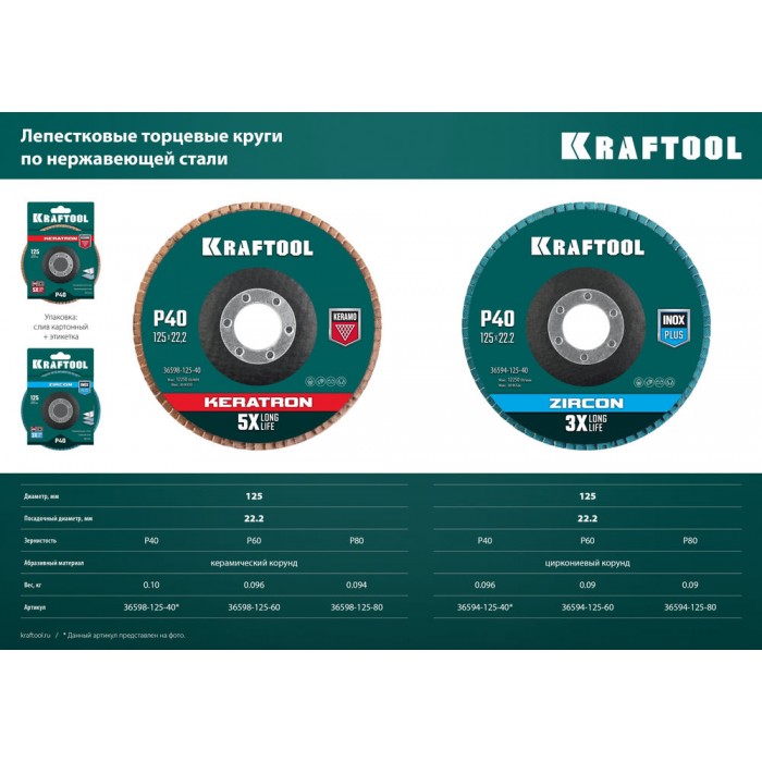 Лепестковые циркониевые шлифовальные круги KRAFTOOL обладают максимально возможным в своём классе рабочим ресурсом и производительностью. Их высокая эффективность при обработке металла и нержавеющей стали обеспечивает им возможность применения на промышленных и индустриальных предприятиях, строительных объектах и площадках тяжелого машиностроения.