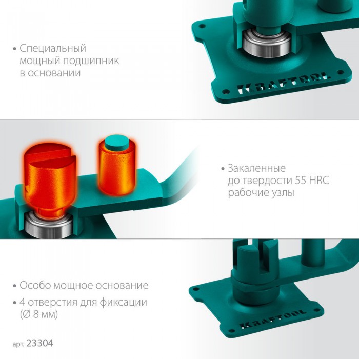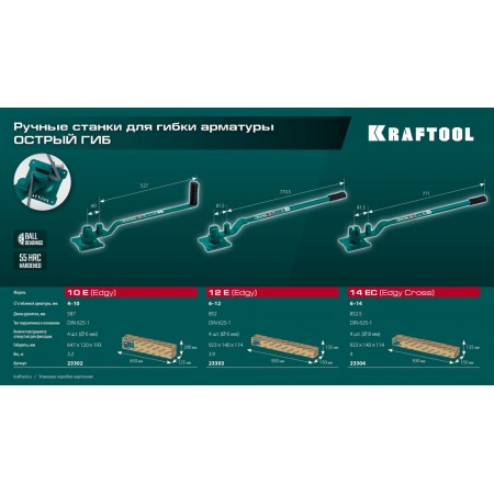 Профессиональный ручной станок для гибки гладкой и рельефной арматуры KRAFTOOL. Один станок для острого в широком диапазоне размеров прутка от 6 до 14 мм. Увеличенный ресурс и плавная работа благодаря использованию мощного подшипника в основании.