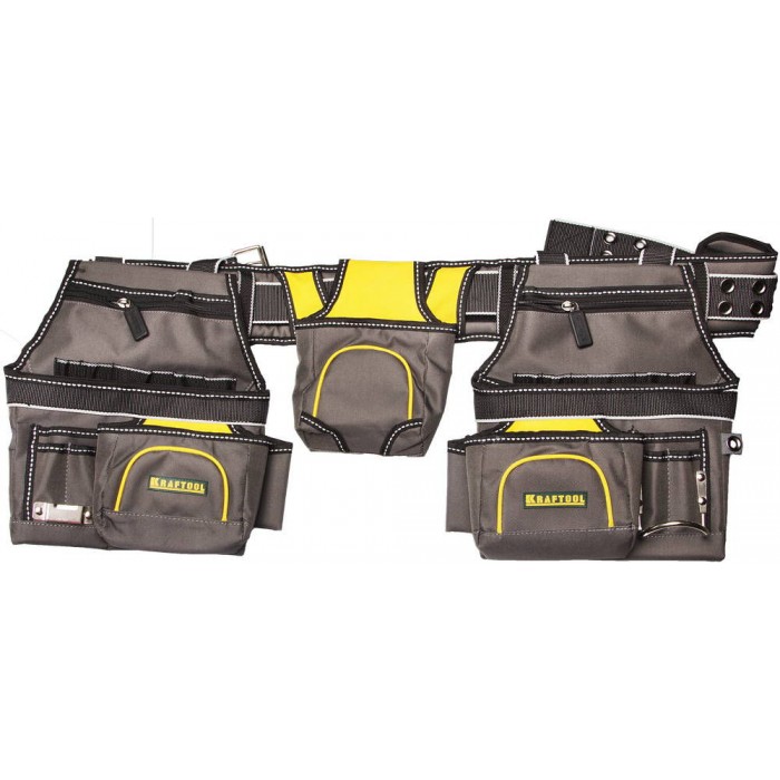 Пояс монтажника с 20 карманами и 2 подвесными подсумками, 2 петли для крепления молотка и рулетки KRAFTOOL 38742