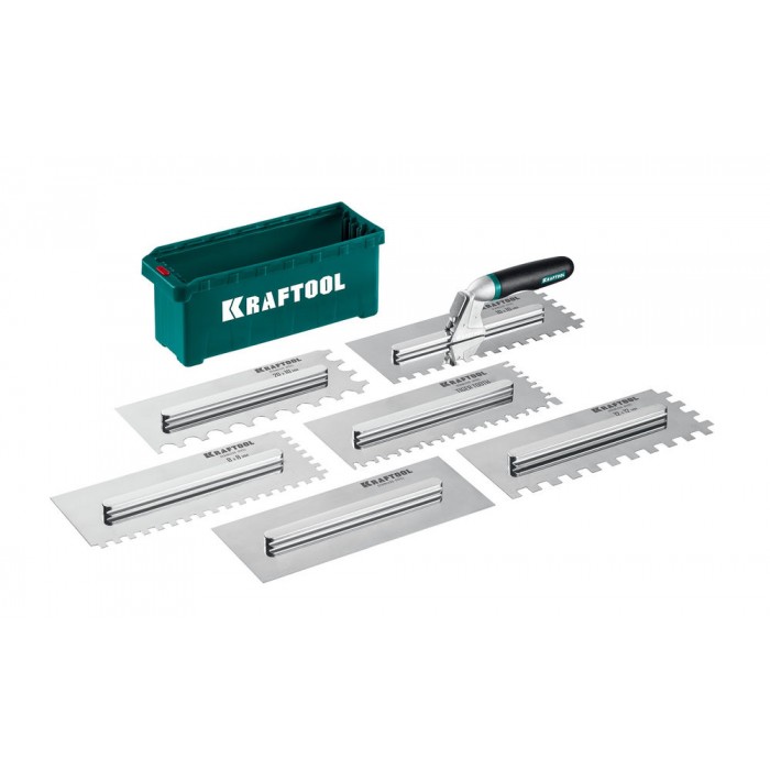 Набор гладилок - универсальный набор инструментов для плиточных и отделочных работ любого объема и сложности. Комплект из 6 лезвий предназначен для плитки всех размеров, а также как для труднодоступных участков работы, так и для внушительных объемов работ. Лезвия из нержавеющей стали толщиной в 0,7мм долговечны и легко очищаются. Ручка меняет свое положение на лезвии, для нужного Вам хвата. Кейс позволяет удобно хранить и транспортировать весь набор.
