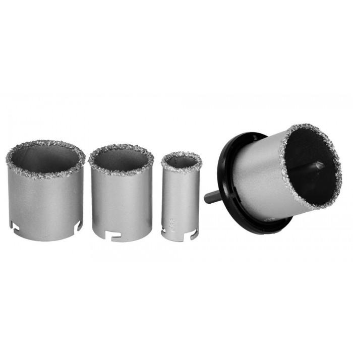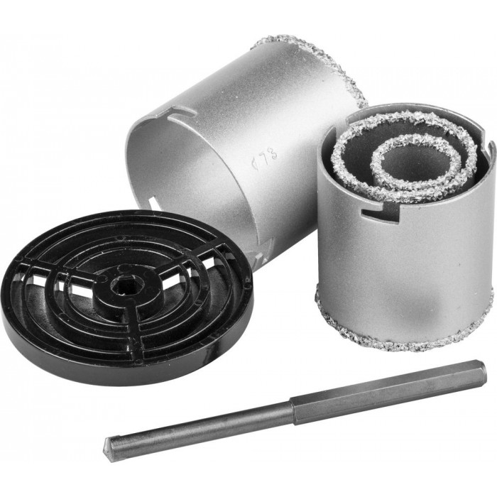 Набор применяется для получения ровных отверстий в облицовочных материалах, а также в ячеистом бетоне, кирпиче и гипсокартоне. Используется на дрелях и легких перфораторах в режиме безударного сверления.