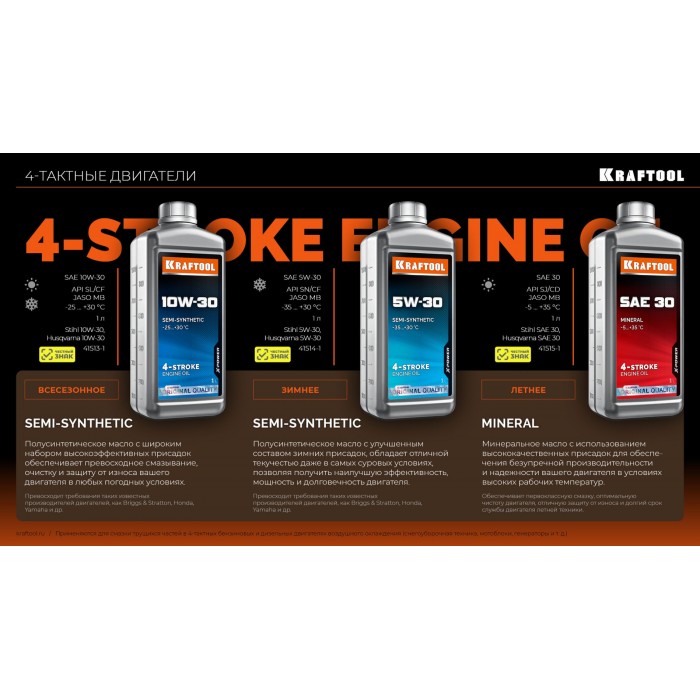 KRAFTOOL 5W-30, 1 л, зимнее полусинтетическое масло для 4-тактных двигателей (41514-1)